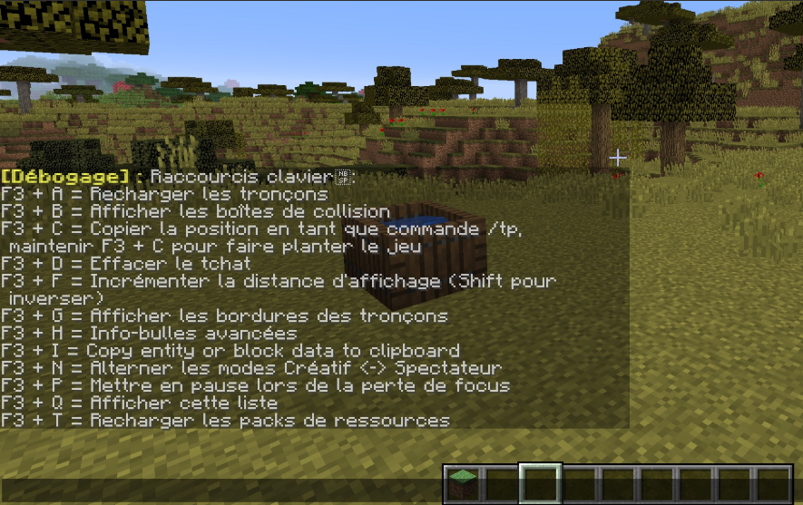 - F3 + B : Affiche les boîtes de collision (ou hitbox)