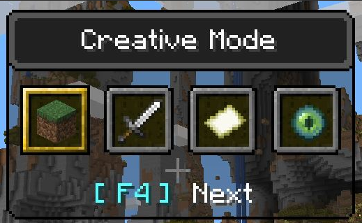 - F3 + F4 : (Ajouté dans la version 1.16) Permet de sélectionner un mode de jeu plus rapidement que la commande /gamemode, avec une interface graphique plus sympathique (présentation complète de cette interface dans cet article).